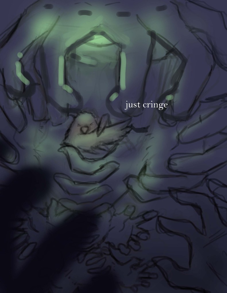 Adam was already a talented graphic designer, finding consistent work designing posters, logos, shirts: you name it. But his initial drafts revealed so much depth that resonated with the material, fulfilling the potential of graphic narratives to transcend mainstream comic strip forms to engage with readers on a truly meaningful level. What we were creating wasn’t quite a comic book, or a picture book with poetic text, but kind of…both, which also leaned into dreamlike cinematic imagery. Taking some literal cues from lines in the poem, he formed a visual meta-narrative of a wounded bird on a journey through dangerous terrain, encountering monsters and pitfalls as metaphors for trauma recovery. Meanwhile, in our little protagonist, he captured expressions and personality that I could instantly connect with as a reader.